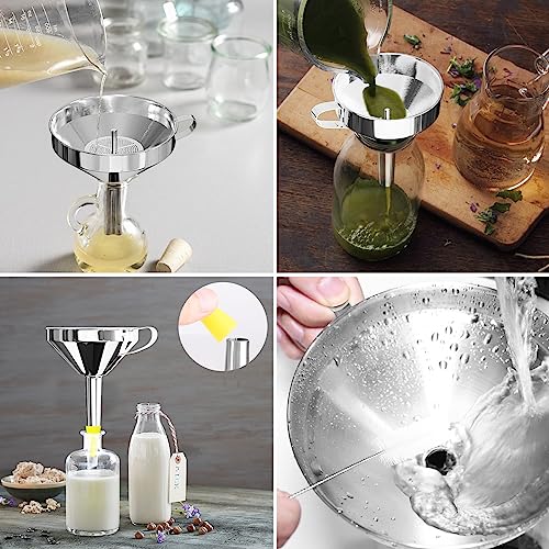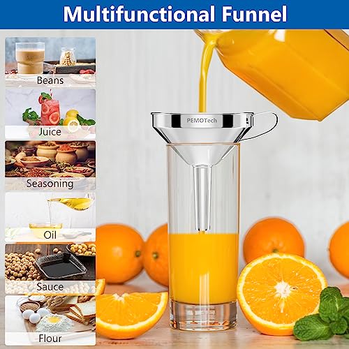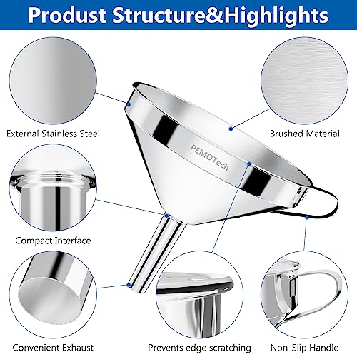 PEMOTech Imbuti, set di imbuti grandi in acciaio inossidabile 3 confezioni da 4,1 pollici, 5,0 pollici, 5,7 pollici, con 2 filtri rimovibili per il trasferimento di ingredienti liquidi, fluidi secchi