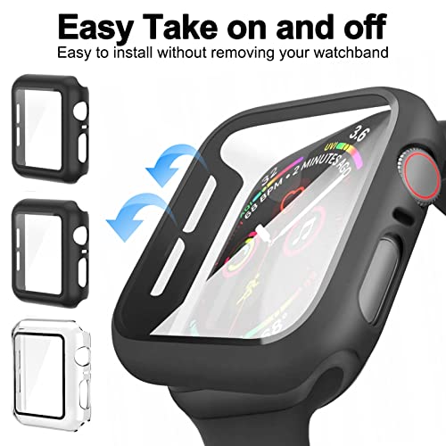 PEMOTech【3 Pezzi】 Cover per Apple Watch Series SE/6/5/4 40mm, Custodia Protezione Schermo in Vetro Temperato Incorporata Custodia Difesa Rigida per iWatch Paraurti Sottile Copertura Completa HD Clear