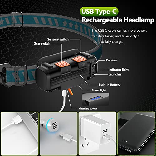 【1200 lumen e Illuminazione per tutte le aree】 Torcia da testa ricaricabile può raggiungere fino a 1200 lumen. Utilizzando due sorgenti luminose, la luce COB ad ampia area ha una gamma di illuminazione ultra grandangolare di 270° e la luce di messa a fuoco XPG può proiettare fino a 100 m. Perfetto per la corsa, l'escursionismo, il campeggio, l'alpinismo, la pesca, il ciclismo e altro in condizioni di scarsa illuminazione.