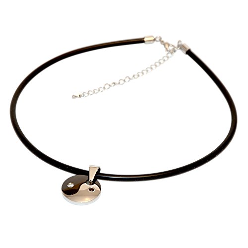 Magnet Kettenanhänger Yin-Yang, Ø ca. 2,3 cm, mit Swarovski Elements. Magnetanhänger No. 1372 mit Zwischenstück und Silikon Kette. Kraftvoller Neodym-Magnet, 1200 Gauss.
