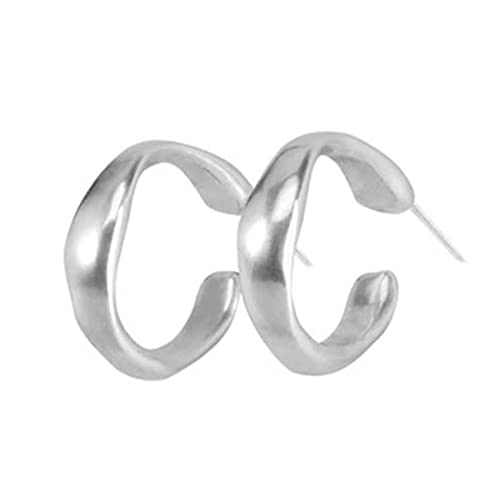 Pendientes de aro anchos y abiertos con forma irregular elaborados en metal bañados en plata. Cierre con tuerca a presión.