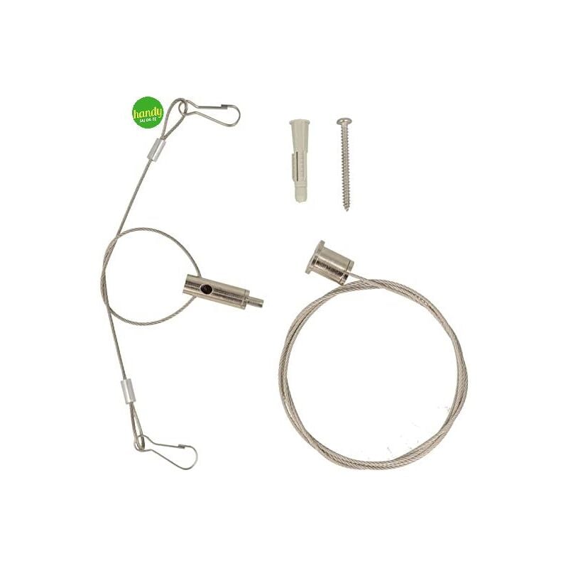 Kit per fissaggi Masidef a sospensione con attacco a soffitto, doppio aggancio, sistema di bloccaggio cable gripper. - Ideale per sospensione di quadri, cartelli, insegne, fotografie, piccole lampade, piccoli vasi e fioriere. - Sistema di bloccaggio cavo cable gripper per una facile messain tensione e regolazione della lunghezza desiderata. - Gancio ad occhiolo con sistema di bloccaggio cavo veloce e sicuro. - Cavo in acciaio Inox A2 AISI 304 - Ø1.5 mm. - lunghezza 1 metro + cavo in acciaio Inox lunghezza 30 cm. con doppia asola e ganci. - Carico di lavoro massimo: 14 kg. - Materiale di fissaggio incluso. Modalità di utilizzo: - Svitare il supporto e fissarlo alla parete con il tassello e la vite inclusi nella confezione. - Inserire il cavo ed avvitare i due supporti. - Il cavo ha un'estremità bombata (ball cable) per essere bloccatto all'interno del supporto. - Tenendo premuto il cavo scorre liberamente. - Rilasciando,il cavo resta bloccato, con la possibilità di regolare facilmente