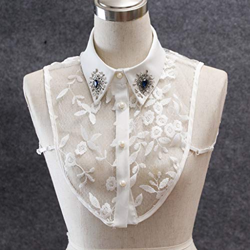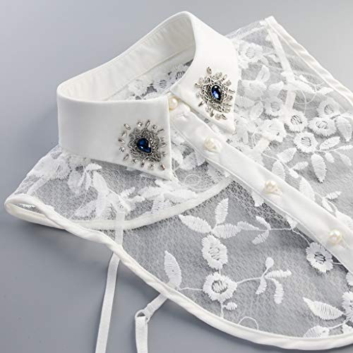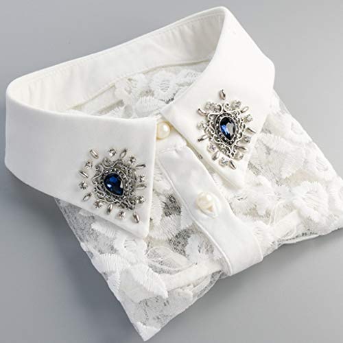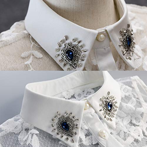 PENG Camicia Ricamata in Pizzo con Strass da Donna Colletto Falso Staccabile Collana Finta