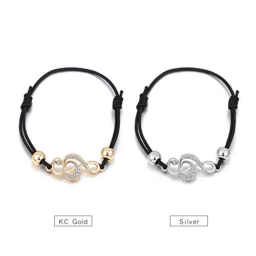 PengJin Braccialetti di Polsino per Le Donne Braccialetti di Corda per Le Donne Note Bracciale Elastico per Ragazze Regolabile Bracciale con Cavo di Cera con Cristallo CZ (Placcato Argento)