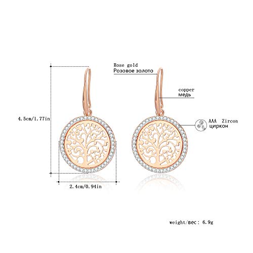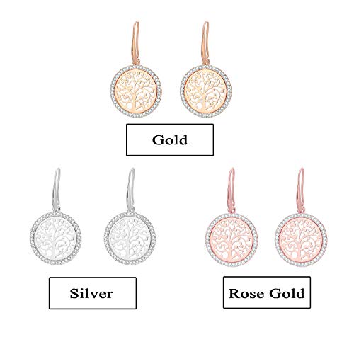 PengJin Orecchini pendenti a forma di albero della vita, orecchini pendenti a cerchio, placcati in oro rosa/argento, orecchini anallergici, per il compleanno della ragazza, Argento Rame Plastica