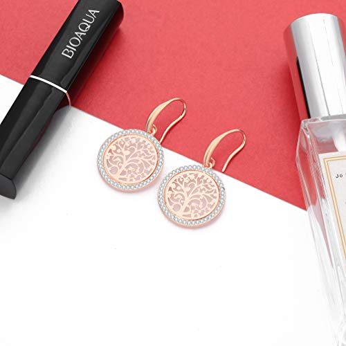 PengJin Orecchini pendenti a forma di albero della vita, da donna, placcati in oro rosa/argento, anallergici, per il compleanno delle ragazze, Oro rosa Argento Rame Plastica