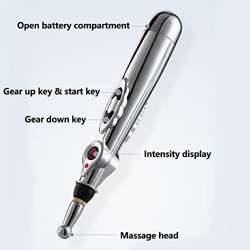 5 in 1 Penna per agopuntura Penna elettronica per agopuntura con 5 testine massaggianti Massaggiatore portatile Strumento per terapia di massaggio con agopuntura per la guarigione muscolare Strumento