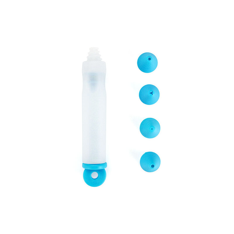 Nome del prodotto: penna per la decorazione della tortaMateriale: silicone + plasticaColore: rosso blu verde rosa (come mostrato nella foto)Formato: 15cm * 2.3 centimetriOgni pezzo contiene: tubo per penna da 1pc o tubo per penna da 1pc + punta da 4 pezzi