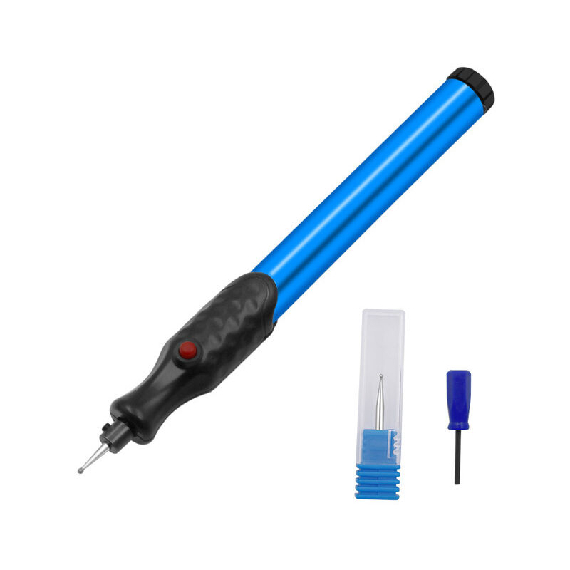 SI IMPEGNA COME UNA PENNA l'incisore compatto ha un'impugnatura ergonomica trilobata e un controllo preciso della punta delle dita Ti consente di incidere o decorare un'ampia varietà di materiali e scoprirai che è possibile creare eccellenti personalizzazioni regali per il perseguimento di hobby, come piatti decorativi in legno, metallo, plastica, vetro, pelle, candele e cornici. Principianti ed esperti allo stesso modo. Con questo masterizzatore, l'unico limite è la tua immaginazione. Incidi la data del tuo matrimonio su un bicchiere di vetro per un regalo di anniversario o una bomboniera, ravviva una semplice cornice di legno con un mix di linee e lettere o abbellisci un semplice specchio con un bellissimo design inciso.p> Sfrutta appieno della tua immaginazione e incidi come vuoi! Descrizione: Tipo di oggetto: Penna per incisione Materiale: Alluminio Colore: Blu Alimentazione: 2 batterie AAA (non incluse) Modalità di utilizzo: 1.Inserire il polo positivo della batteria verso