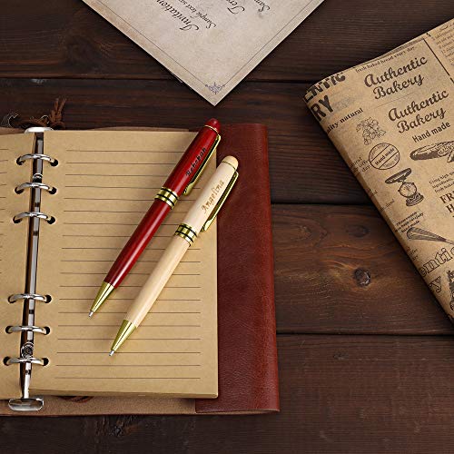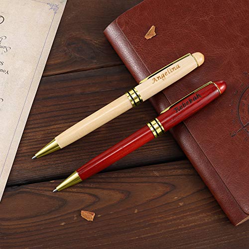 Penna in Legno Personalizzata con Nome Inciso Penna a Sfera Personalizzato Incisa e Scatola per Uomo Donna (1 penna colori log + 1 penna color mogano + scatola)