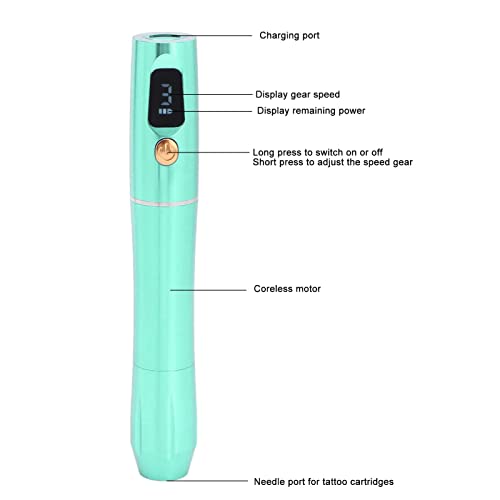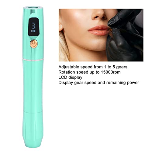 Penna per Macchinetta per Tatuaggi, Penna per Tatuaggi Semipermanente per Microblading per Sopracciglia e Labbra, Macchina Wireless da 600 MAh a Velocità Regolabile con Display LCD, Verde(EU)