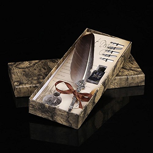 Materiali di alta qualità: questa penna a forma di piuma di Quill mix di acciaio inossidabile e lega di iridio per prevenire la ruggine e garantire una lunga durata. Elegante nell'aspetto, fedele allo spirito dell'antico europeo nel fare penne.