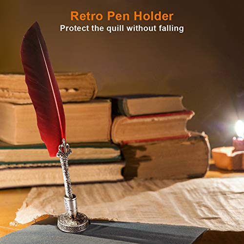【SCRIVI ORA E ACCESSORI COMPLETI】 Tuta include 1* penna piuma, 1* base porta pennino, 1* bottiglia d'inchiostro (con inchiostro), 5* pennini in acciaio inossidabile e 1set di lettere vintage (stile casuale). Soddisfare tutte le vostre esigenze
