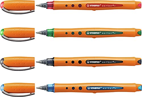 Penna Roller - STABILO worker+ medium - Tratto 0,5 mm - Astuccio da 4 - Colori assortiti