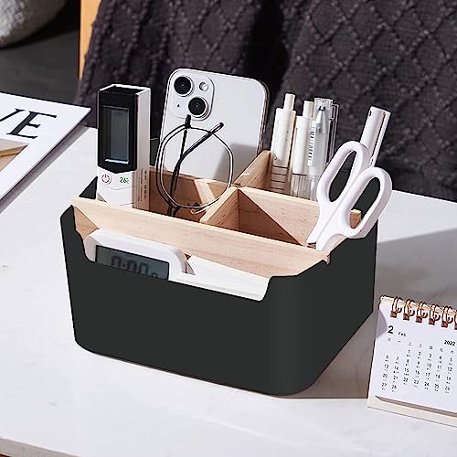 Penna da scrivania in legno, organizer da scrivania multifunzione, per scrivania, accessori da scrivania, porta gioielli, organizer per cassetti (nero)
