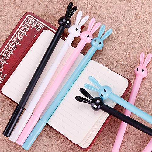 Penna gel a sfera in 4 colori, con impugnatura in gel, a forma di coniglio, con tappo a forma di animale, 0,5 mm, inchiostro nero, rosa, bianco, blu, nero