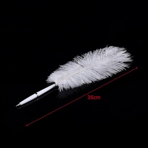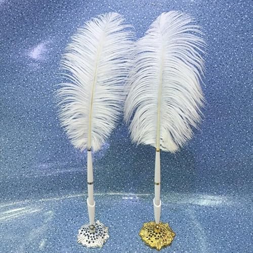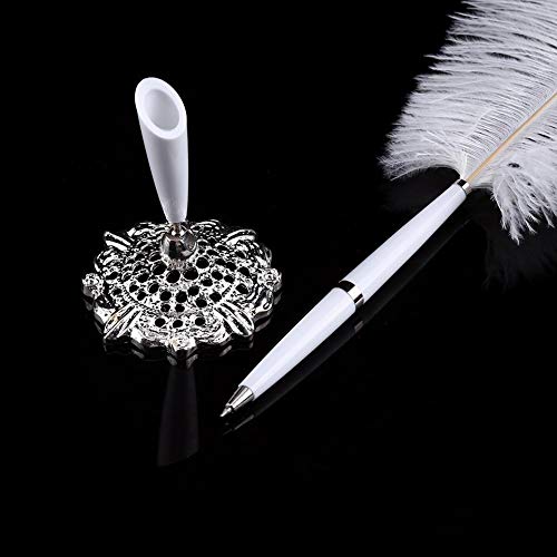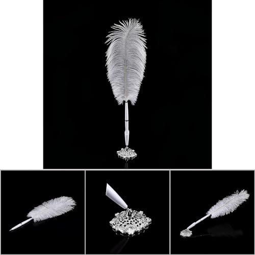 Penna d'oca - Penna a sfera con firma a penna da matrimonio a 2 colori con piume di struzzo e supporto in metallo Novità(argento)