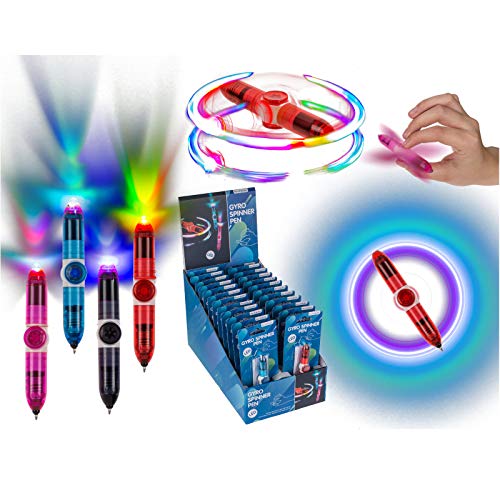 Penna a sfera, Gyro Spinner con LED (batteria inclusa), circa 9 cm, 4 colori assortiti, -1 pezzo casuale