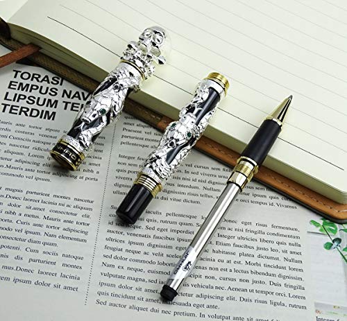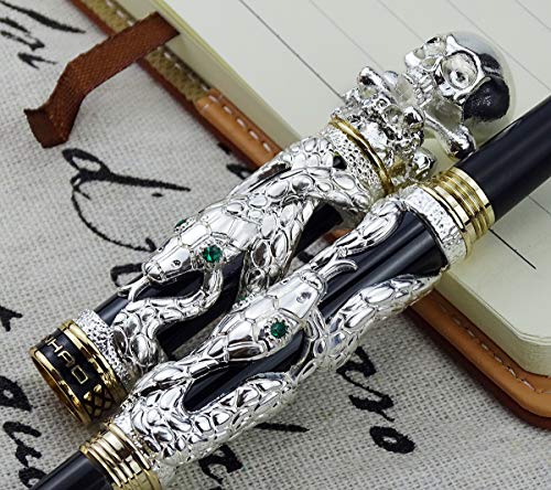 Penna a sfera Jinhao Snake, colore argento con testa di teschio in metallo massiccio