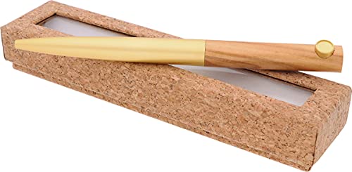 Barile in metallo con finitura dorata e tappi in legno, questa penna è molto facile da usare.