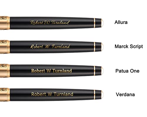 Penna a sfera di lusso con personalizzazione personalizzata: incisione gratuita fino a 25 caratteri. Scegli i font Allura, Marck Script, Patua One e Verdana per il tuo regalo personalizzato.