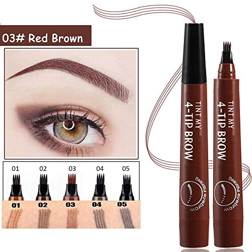 【FASHION DEL SOPRACCIGLIO PEN MICROBLADING】- Quattro punti di punta del sopracciglio penna forchetta crea dall'aspetto naturale sopracciglia senza sforzo e soggiorni in tutto il giorno per gli occhi make-up, facile da usare;
