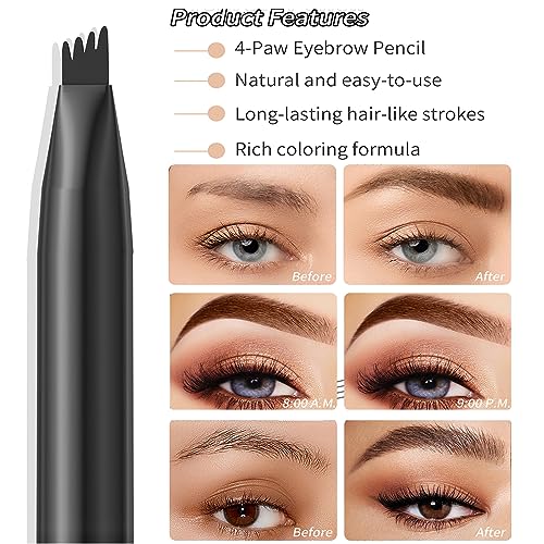 Penna Sopracciglia Probuk Matita Sopracciglia Nero Waterproof, Microblading Sopracciglia, 4D Matita per Sopracciglia Liquida con Quattro Punte, Anti Sudore, Durevole e non Sbiadisce(#04)