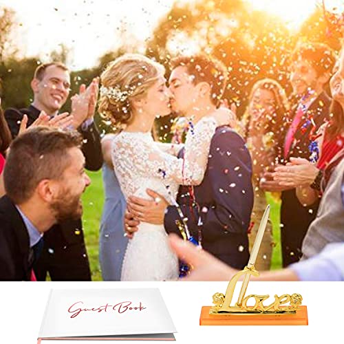 Penna da Sposa Firma Penna Matrimoni Set Penna Stand per Matrimoni e Parte con Supporto in Metallo Penna a Sfera Inchiostro Nero con Base Antica in Metallo Dorato