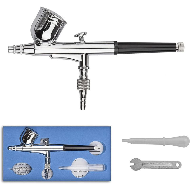 Il design del grilletto a doppia azione consente agli utenti di determinare la quantità di aria e fluido rilasciati. Aerografo versatile, ad alte prestazioni, a doppia azione con una tazza a doppia azione di gravità di 7 cc, ago e ugello da 0,3 mm. Questo aerografo versatile e facile da usare può essere utilizzato per spray per dettagli sui capelli, spray generali o per spray di fondo fino a 1-1/2" largo. Applicazione: Ottimo per il trucco con aerografo, hobby, tatuaggi temporanei, decorazione di torte, belle arti, nail art con aerografo, ecc. È un ottimo aerografo a tutto tondo anche per principianti e studenti come artisti avanzati, in quanto è ideale per la maggior parte delle applicazioni di aerografo e per la maggior parte dei tipi di supporti di pittura. Specifiche: Ugello diametro: 0,3 mm Capacità tazza: 7cc Pressione di esercizio: 15-50 psi Il pacchetto include: 1 aerografo < p >1 chiave per ugelli 1 contagocce 1 istruzioni ladaceae