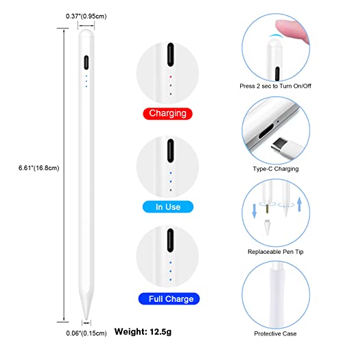Penna stilo compatibile per Apple iPad (2018-2022), penne stilo cimetech per touch screen con rifiuto del palmo, rilevamento inclinazione e rilevamento magnetico, punte di ricambio, design touch