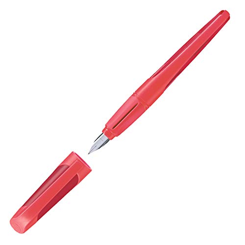 Penna Stilografica Ergonomica per bambini - STABILO EASYbuddy in Corallo/Rosso - Punta Principiante - Cartuccia Blu inclusa