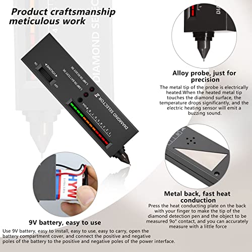 Doppia funzione: il tester del diamante può testare l'autenticità dei diamanti (sopra 9) e può anche testare la durezza dell'agata di cristallo di giada finita con un valore di durezza compreso tra 5-9.
