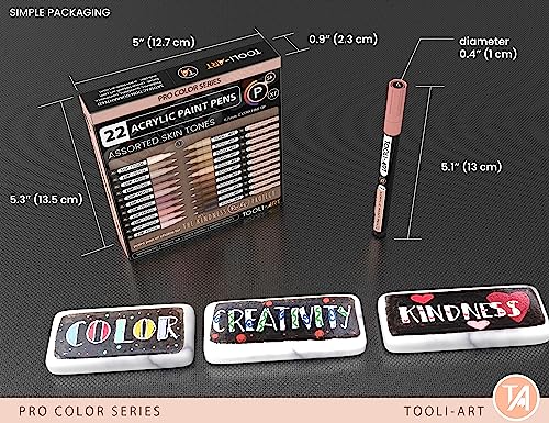 Set di 22 pennarelli acrilici assortiti color carne, serie Pro Color, punta extra fine da 0,7 mm, per pittura su roccia, vetro, tazze, legno, metallo, tela, dettagli. Non tossico, a base d'acqua,
