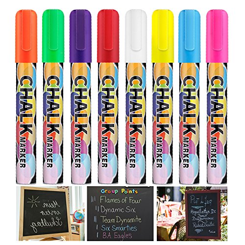 Pennarelli cancellabili a secco e a umido per lavagne, finestre, specchi e vetrine, set di 8 colori, punta a scalpello e a proiettile reversibile da 6 mm, a base acquosa, liquidi