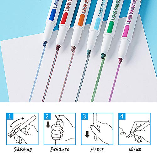 Ampiamente utilizzato: le penne Outline sono ideali per scrivere biglietti di auguri, scarabocchi/poster, disegnare/etichettare. Nota: al fine di prolungare la durata della penna, si consiglia di seguire i passaggi nelle istruzioni prima di ogni utilizzo e coprire il tappo per la conservazione dopo l'uso.