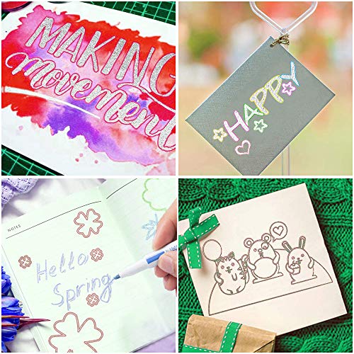PENNA CONTOUR DOPPIA LINE: Funzione automatica unica a doppia linea, ampia copertura. La scrittura è liscia e non macchia o trasuda la carta. Nota: Su carta bianca vengono visualizzate due linee d'argento e colorate e su carta nera, viene visualizzato l'argento.