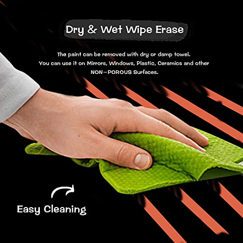 ✎ CANCELLA FACILMENTE - Asciutto o bagnato cancellabili, rimuovere l'inchiostro arancia del gesso solo in pochi secondi da una superficie non puro con un panno asciutto o umido. Non è necessario alcun prodotto di pulizia aggiuntivo.