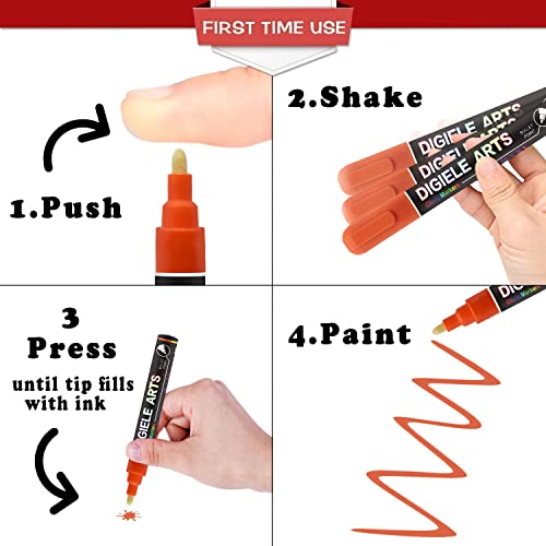 Pennarelli Gesso Liquido Arancia, DIGIELE 2 Pcs Pennarello 3mm + 2 Pcs 6mm Pennarello Gesso Arancia e 16 Etichette Adesive Lavagna, Asciutto o Bagnato Cancellabili, Reversibile Punta Scalpello o Tonda