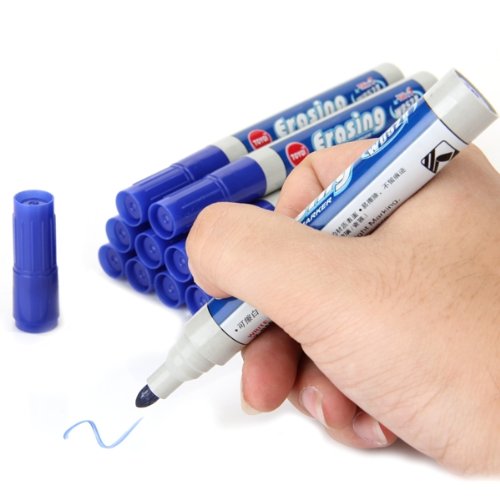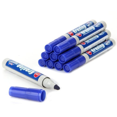 10 Pennarelli Marker Matita Lavagna Refill Blu Lavabile Ufficio Casa Scuola