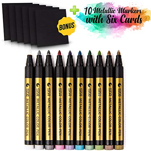 Diversi colori: si compone di dieci colori assortiti, pennarelli metallici con punta a proiettile, grazie all'inchiostro scintillante, è l'opzione migliore per la doppia linea o abbellire diverse opere d'arte come scrapbooking, album di compleanno, ecc.