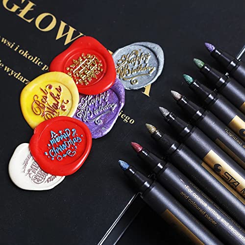 Kit pennarelli per sigillo di cera, PORXFLY 12 pezzi pennarelli metallici per decorare timbri con sigillo di cera, set di pennarelli per sigillo di cera adatti a tutte le perline di ceralacca (6)