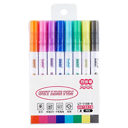8 colori glitterati: pennarelli a doppia linea disponibili in 8 diversi colori contenenti inchiostro scintillante, che producono un colore vivido e aggiungono una lucentezza scintillante. adatto anche per quasi tutte le superfici, come metallo, ceramica, legno, gomma, vetro, plastica, pietra, ecc.