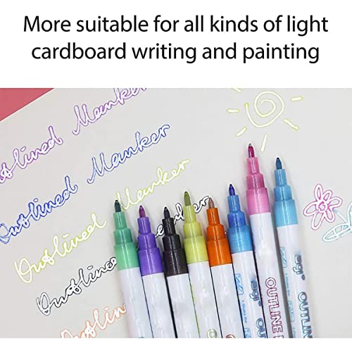 design unico e pennarelli metallici: questo pennarello per contorni è diverso dai normali pennarelli sul mercato. Il set di pennarelli luccicanti ha una ricarica metallica brillante da 1 mm. quando i set di indicatori di contorno vengono scritti su carta, attorno al colore apparirà un cerchio di colori vivaci.