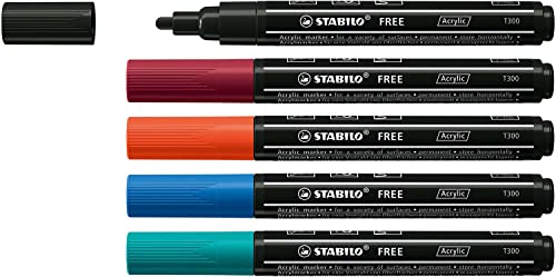 Pennarello acrilico - STABILO FREE Acrylic - T300 Punta rotonda 2-3 mm - Urban Edition - Astuccio da 5 Marker - Colori assortiti