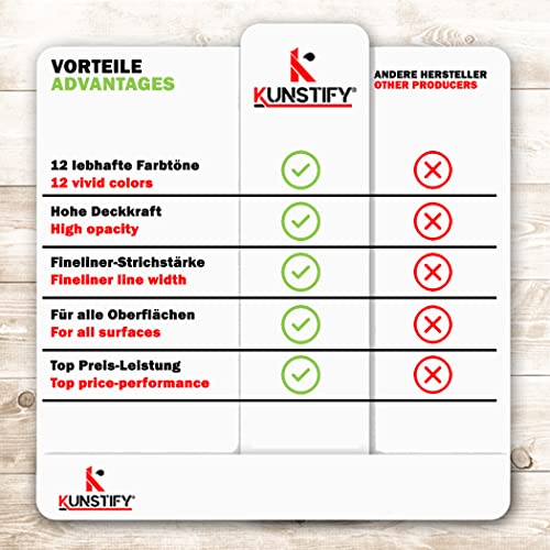 ✍FORZA LINEA 2 mm - Questo set offre una larghezza di linea di 2 mm con la quale è possibile dipingere grandi superfici. Ad esempio, si possono dipingere pietre, decorare uova di Pasqua, creare decorazioni natalizie e altri progetti di bricolage. Nella nostra gamma KUNSTIFY troverete anche le seguenti larghezze di linea: 0,5 mm, 0,7 mm, 1 mm e 2 mm. A seconda della larghezza del tratto delle matite, è possibile dipingere aree piccole o molto grandi.