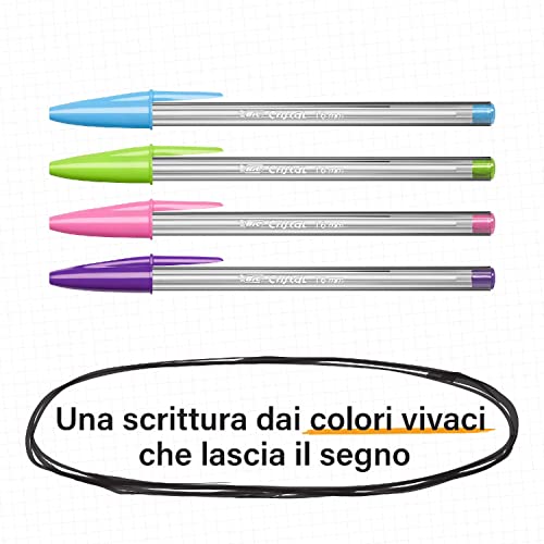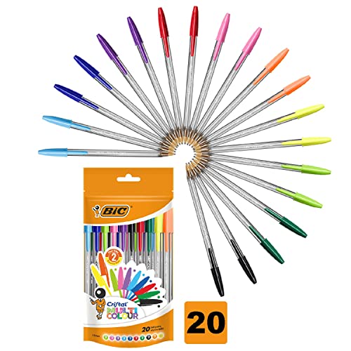 BIC Penne Colorate a Sfera, Cristal Multicolour, Colori Assortiti, Punta Larga (1.6 mm), Confezione da 20 Cancelleria Scuola