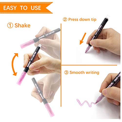Con l'effetto di riempimento argento e il contorno del colore, la penna a doppia linea è adatta per disegnare bellissimi caratteri su biglietti di auguri.