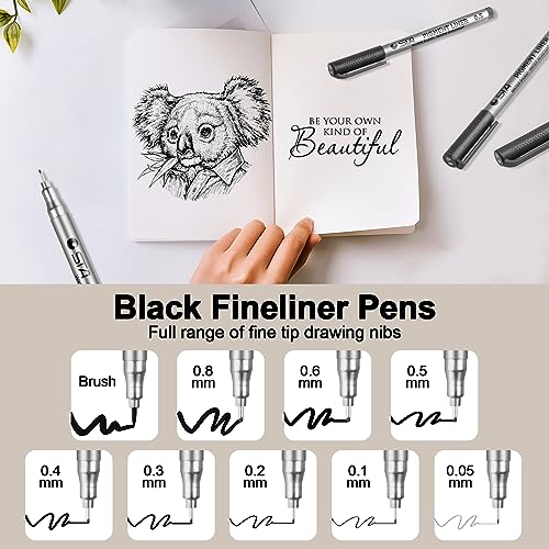 Penne per disegno a pigmenti neri per schizzi, disegni, disegni, disegni, documenti per ufficio, fumetti, manga, scrapbooking e uso scolastico