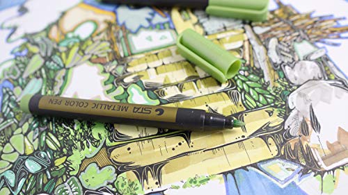 Alta qualità: questi pennarelli metallici sono penne colorate a base d'acqua. Con una punta fine di circa 2 mm di larghezza del tratto forniscono linee molto belle e scivolano senza sforzo sulla pagina senza lacune o bolle nell'inchiostro e allo stesso tempo un'elevata opacità. I colori si asciugano rapidamente.