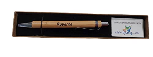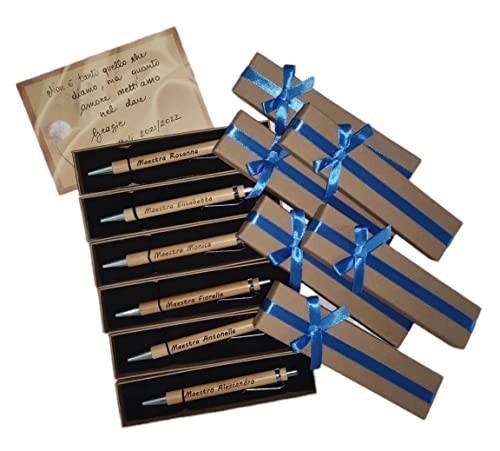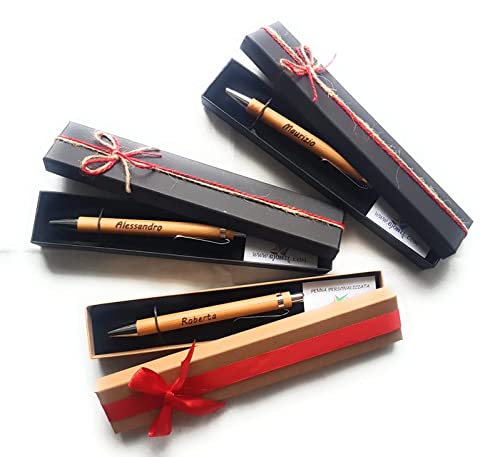 3 Penne Personalizzate a Sfera Legno Bambu' con Incisione Nome Regalo Laurea Comunione Compleanno con Scatola Bomboniera per Cerimonia Regalo Maestra Natale